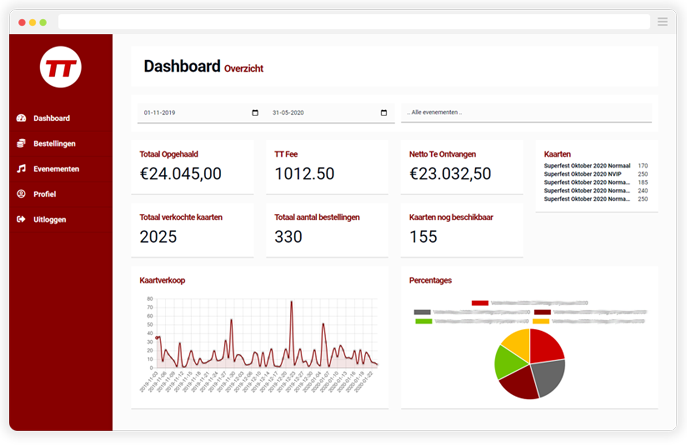 Met het eenvoudige Tickettop dashboard beheer je alle evenementen, tickets en gasten